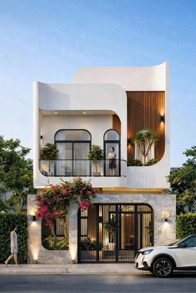Giữa những ngôi nhà phố quen thuộc, dưới đây là mẫu nhà hiện đại 2 tầng với diện tích 5x20m chọn cách nổi bật theo một hướng rất riêng: mềm mại nhưng cá tính, tối giản nhưng không hề đơn…